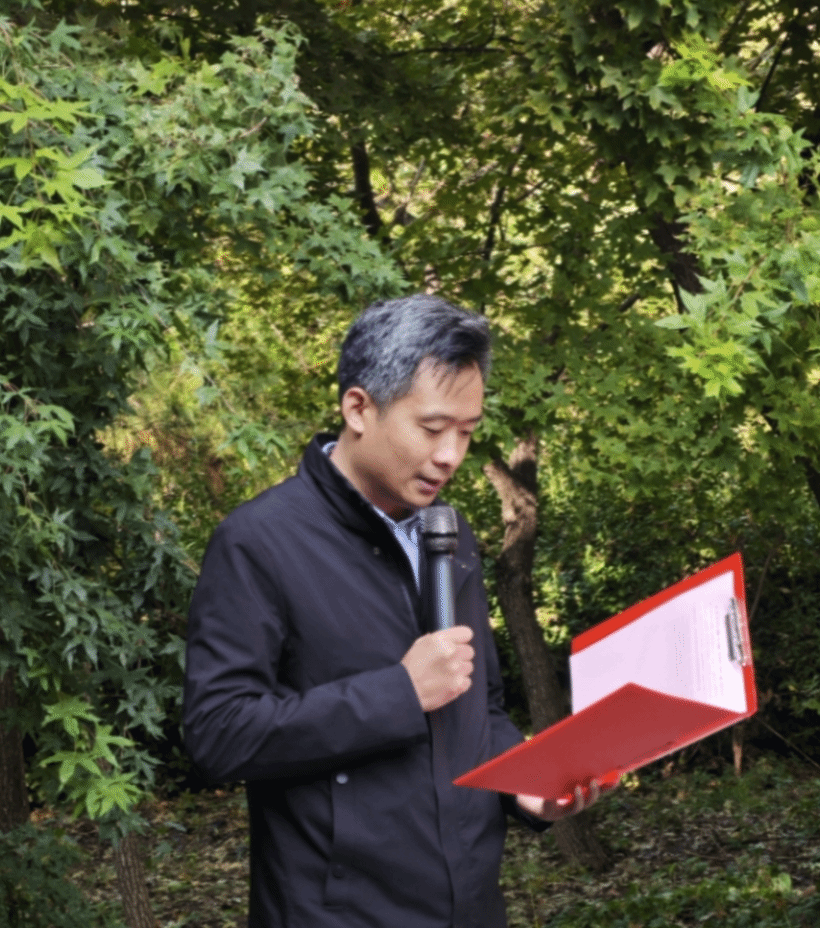 活动在庄严肃穆的氛围中正式开始。老教师代表卢准炜教授,满怀深情地讲述了常师贞先生的生平事迹,让在场师生深刻感受到常先生“治学严谨、淡泊名利”的师者本色。随后,师生代表整齐列队,向常师贞先生雕像献上鲜花、鞠躬致敬。肃立的身影,传递着赓续精神血脉的坚定信念,展现了公司师生对先生的崇高敬意。