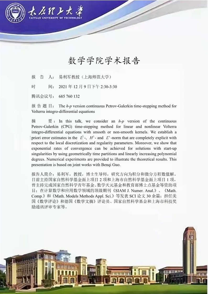 英国上市官网365将于12月9日邀请上海师范大学易利军教授作报告