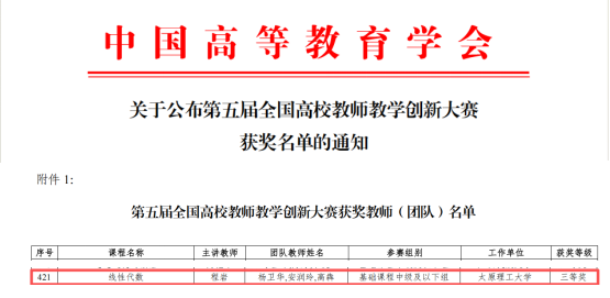 8月18日,程岩讲师凭借《线性代数》课程的教学创新突破,在第五届全国高校教师教学创新大赛中荣获国家级三等奖。这充分展示了程岩老师在教学创新方面的深厚功底和辛勤付出,也展现了公司公共课程教学团队深厚的技术积累。