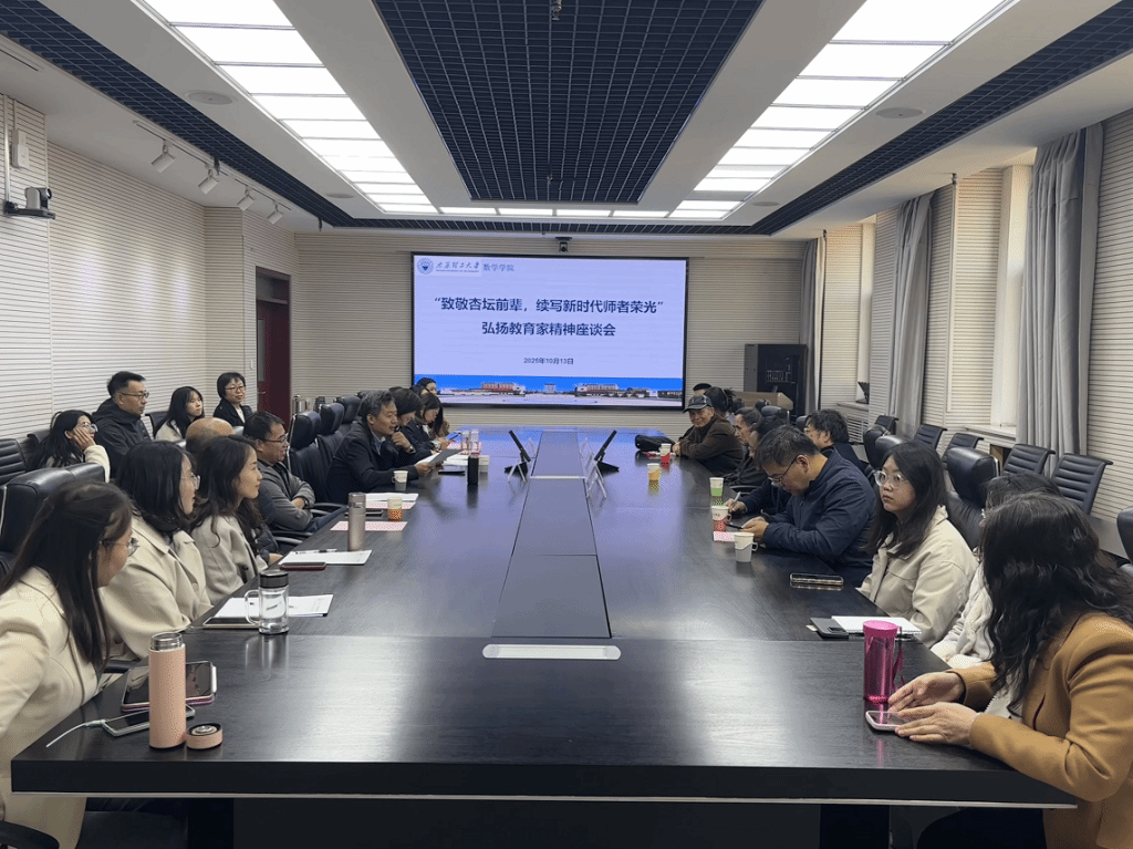 优秀教师代表孙高峰讲述了张洪斌、卢准炜、王绪柱三位老师淡泊名利、克己奉公的事迹,王鲜霞、王健老师分享了自己在教学和科研工作中弘扬和践行教育家精神的经验,强调要上好讨论班,给员工讲授学术前沿知识和问题;鼓励员工外出交流,提升员工的科研能力;要关心爱护员工,注重员工的思想政治教育;要坚持终身学习,用自己的成长陪伴和照亮员工前行之路。
