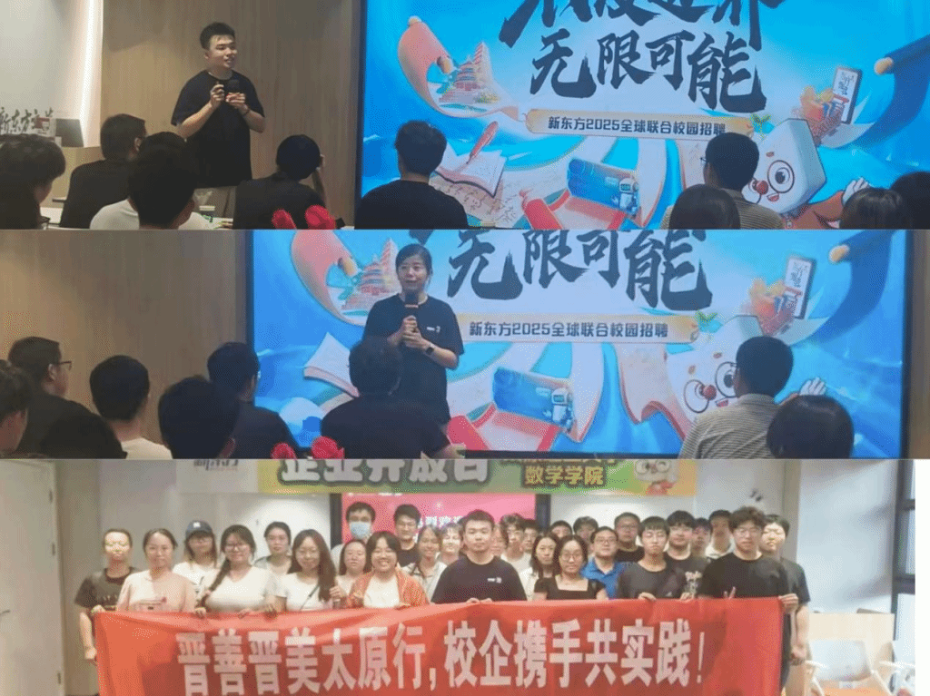 实践活动的最后一站,实践队来到了新东方太原公司。大家不仅参观了公司现代化的教学设施和办公区域,还通过与公司人力资源部老师的交流,深入了解了新东方教育科技集团的发展历程及其在电商、文旅等领域的转型之路,切身感受了教培行业标杆的韧性与创新力。