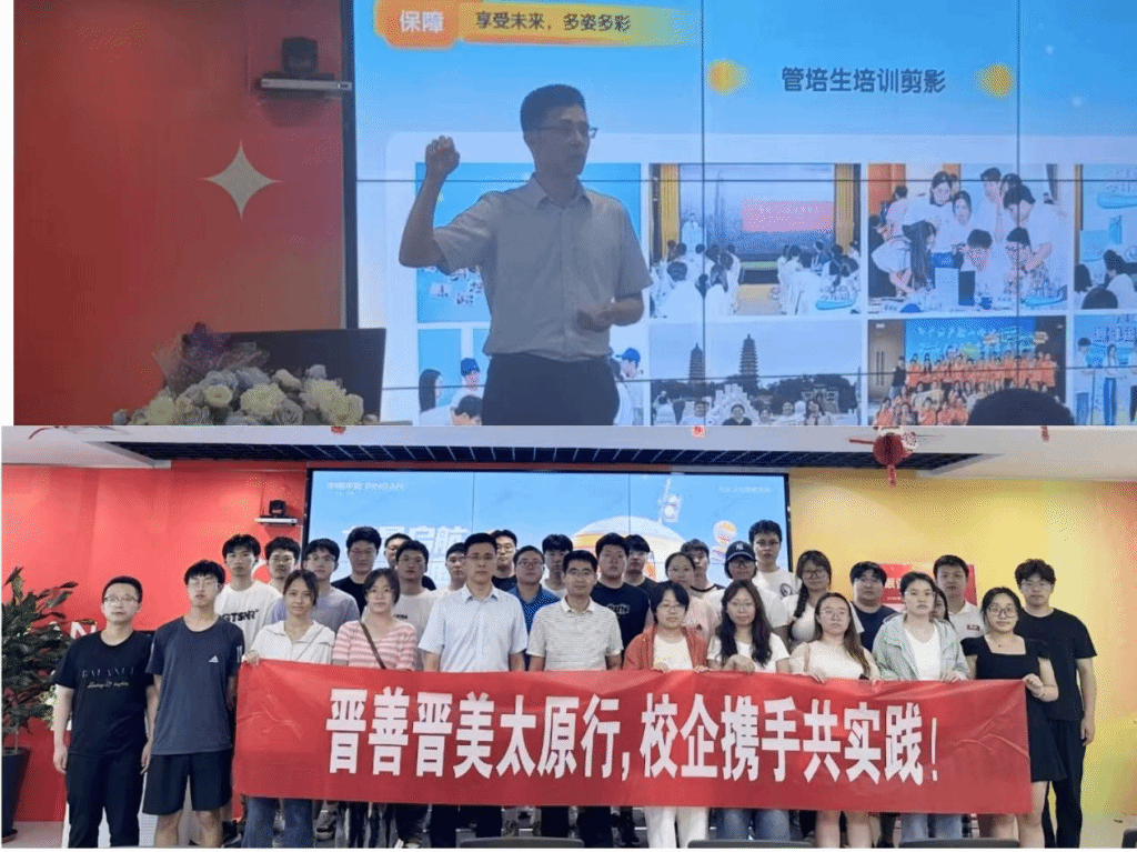 当日下午,实践队走进平安产险山西分公司。集团主管详细介绍了公司依托集团资源,以科技应用、渠道网络、丰富产品线和优质服务领跑行业的发展态势,并结合自身工作经历,分享了择业心态与职场成长故事,建议同学们“主动走出去,勇敢看未来”,并围绕当前就业形势提供了实用建议。同时,大家还参观了现代化的办公环境,对企业管理理念与运行模式有了直观认知。