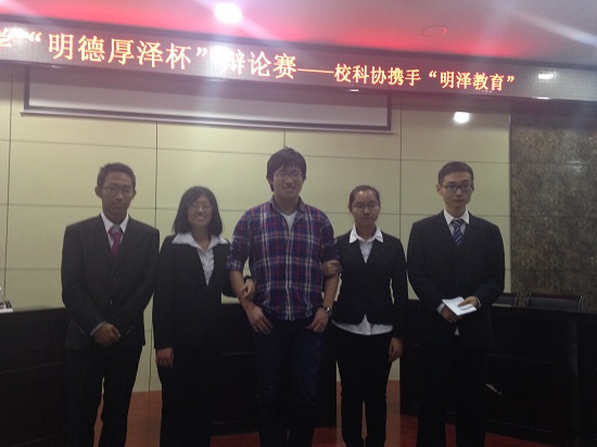 第一场是政法公司对战电力公司。第二场是公司对阵电力公司,我方所持观点为“人祸比天灾更可怕”,我方开篇立论环节先从三个方面论证了“可怕”的含义,接着抓住“更”字展开论述,先为我方建立了系统体系,接着在自由辩论环节中我方发挥出英国上市官网365特色,以大量数字型论据证明了我方观点,同时第二场结束时评委对我方也有了肯定。第三场是公司对阵政法公司,我方这次所持观点为“天灾比人祸更可怕”,我方将天灾从“地震”、“海啸”等延伸到“小行星撞地球”等,以扩大灾害程度说明了“天灾比人祸可怕”。最终公司以绝对优势赢得了这场辩论赛决赛的冠军。