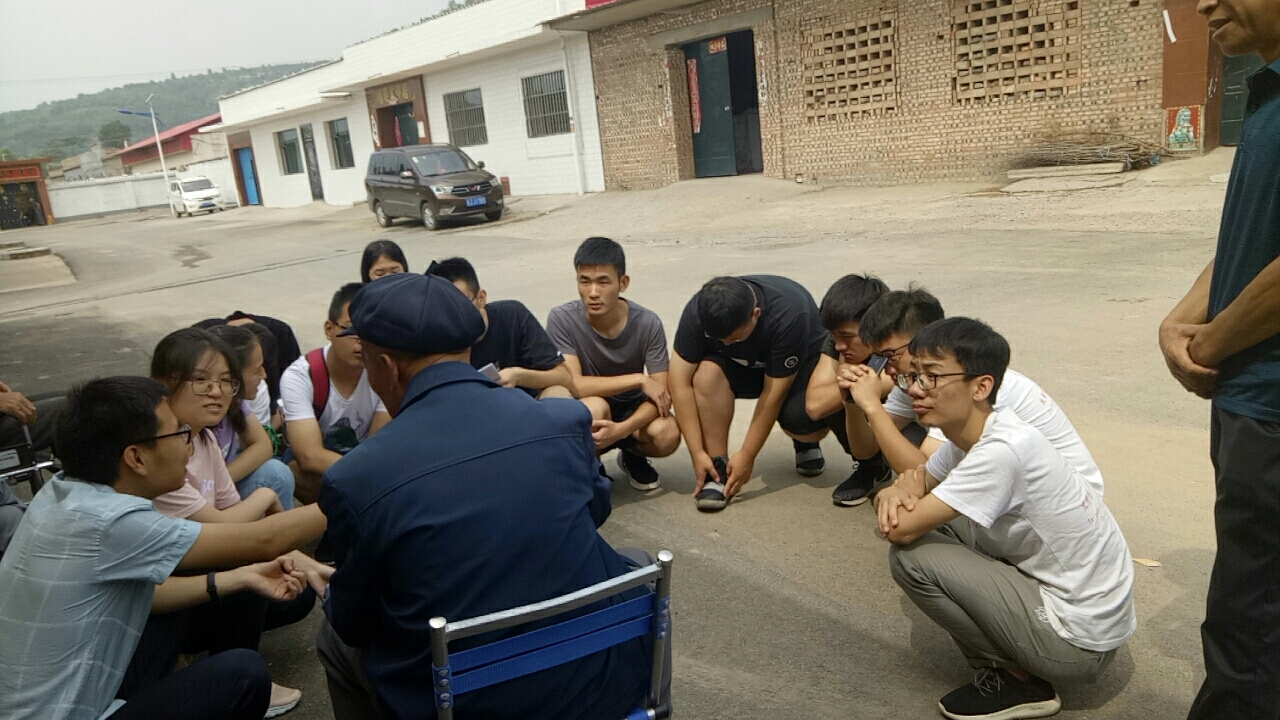 最后,在村委李书记的带领下走了村里的几位老党员,老革命战士,他们给实践队的队员们详细讲述了胡堡村的历史,基本情况,以及他们的个人经历。第一位是村里的老书记杨贵荣,他24岁毕业来到胡堡村,入党,担任村支书,带领村民们在这片土地上耕种劳作,过上好日子。老爷爷讲起当年的事,任然历历在目,与实践队员侃侃而谈。第二位是老人薛云祥,他也是村里的老书记,讲起了村里以前搞合作社,人们吃喝都是在一块,后来改革开放,村民们都分到了土地牛羊,夸赞党的政策好。第三位是老民兵连连长渠升华,讲村民在抗日战争时期团结起来奋起反抗,配合游击队和八路军打鬼子,解放后,民兵连修水渠,巡逻,守护着这一方土地。说起被授予"先进民兵营"的称号,老人满是自豪。