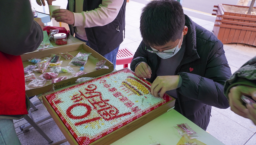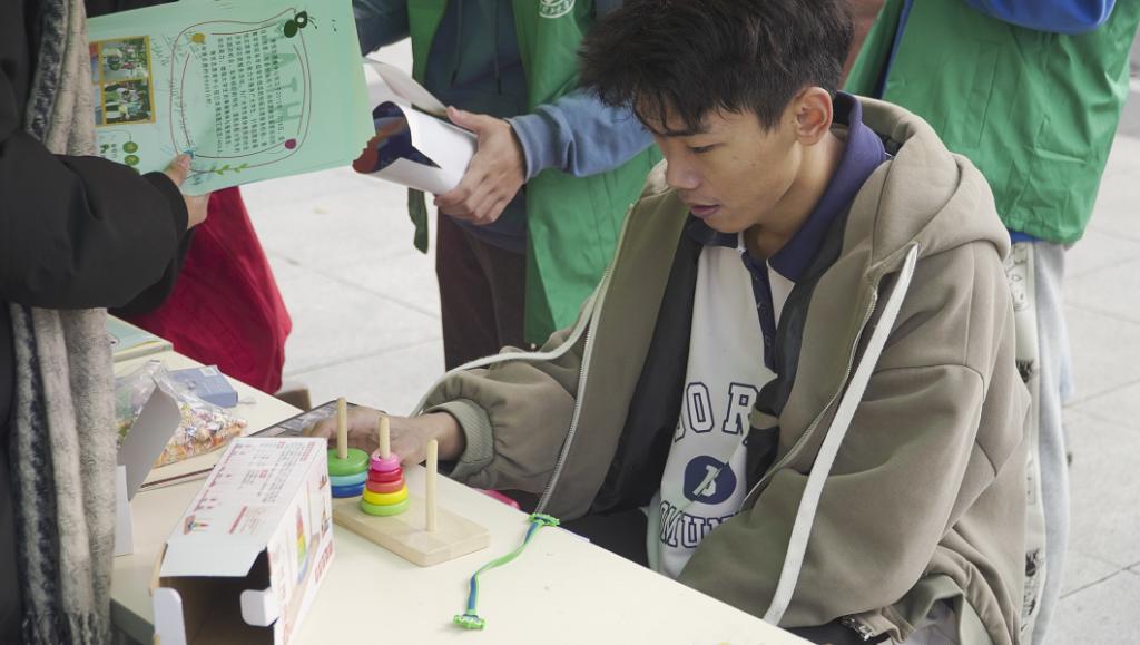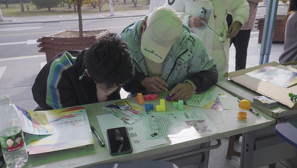游戏区设有“数字华容道”、“汉诺塔”、“索玛立方体”等益智小游戏,吸引了大量同学前来体验,同学们在游戏中收获乐趣,志愿者还为参与的同学准备了精美小礼品,并参与十周年钉子拼图,让参与的每位同学都收获满满。