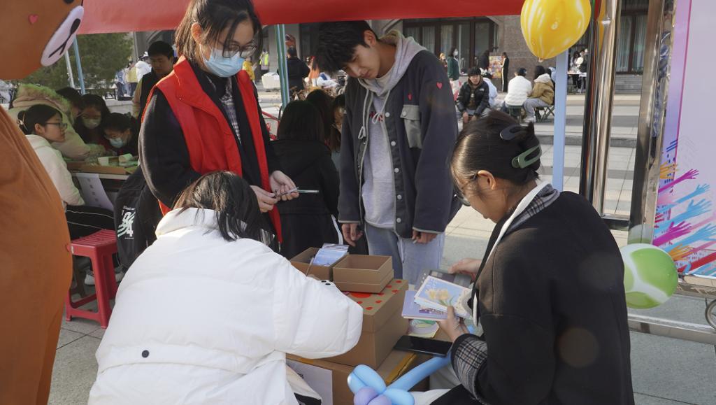 爱心捐书,创新价值,资源回收,循环利用。活动现场,同学们送来教学课本、杂志书刊、小说名著,考研资料等很多自己的闲置书籍。志愿者将同学们捐来的书籍打包整理,做好记录,并存入青悦书屋,供同学们借阅。一摞摞书籍,凝聚着赤诚的爱心,承载着美好的祝福,托举着梦想和希望。