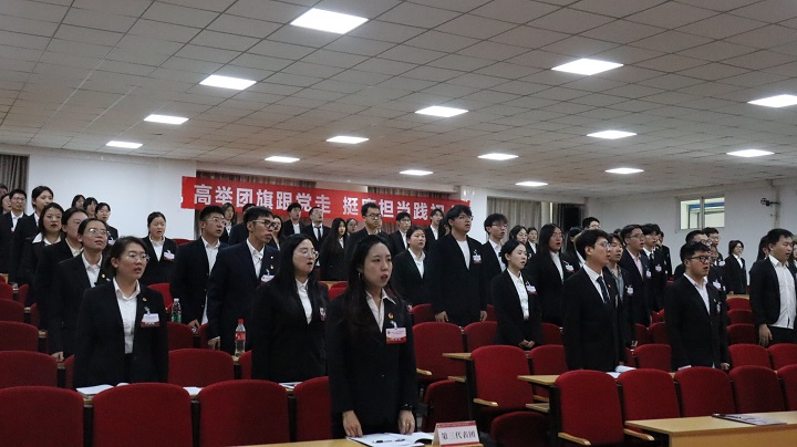 在完成了大会的各项议程和任务后,共青团英国上市官网365第三次代表大会在嘹亮的《光荣啊,中国共青团》歌声中胜利闭幕。