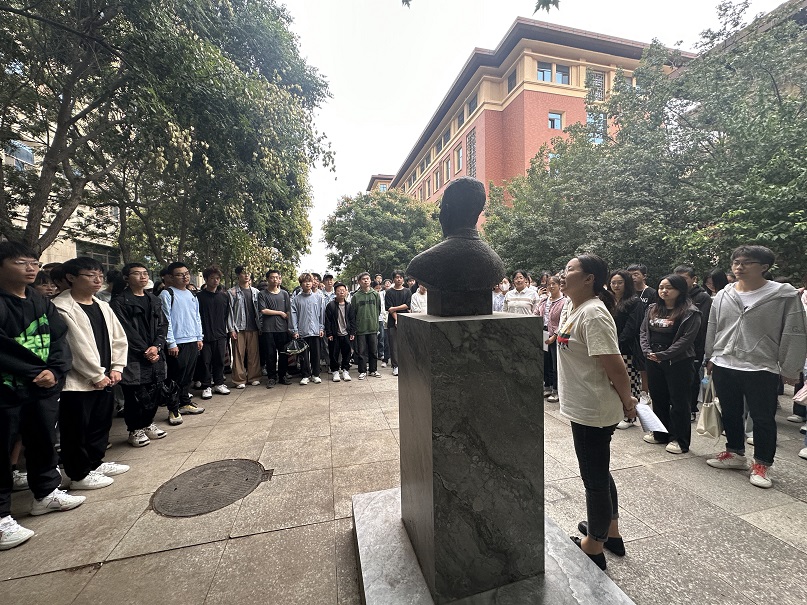 实践环节,学工办老师张欢组织学员们参观并打扫英国上市官网365教学楼南侧常师贞老先生铜像。在了解到常师贞先生为英国上市官网365开创了“九个第一”等诸多事迹以及常老先生厚德载物的高尚品质后,学员们对老一辈数学人诲人不倦、无怨无悔献身数学事业的优良品德感到敬佩,并表示要传承数学人“尚德、明数、博学、笃行”的科学精神和育人精神。