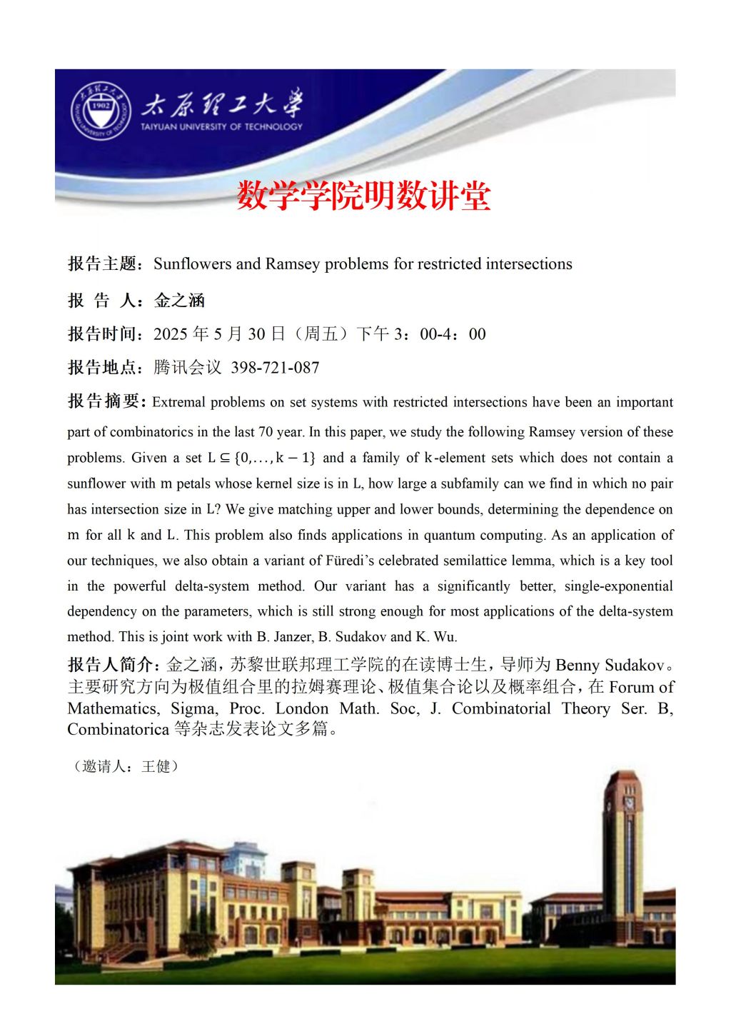 英国上市官网365将于5月30日邀请金之涵做学术报告