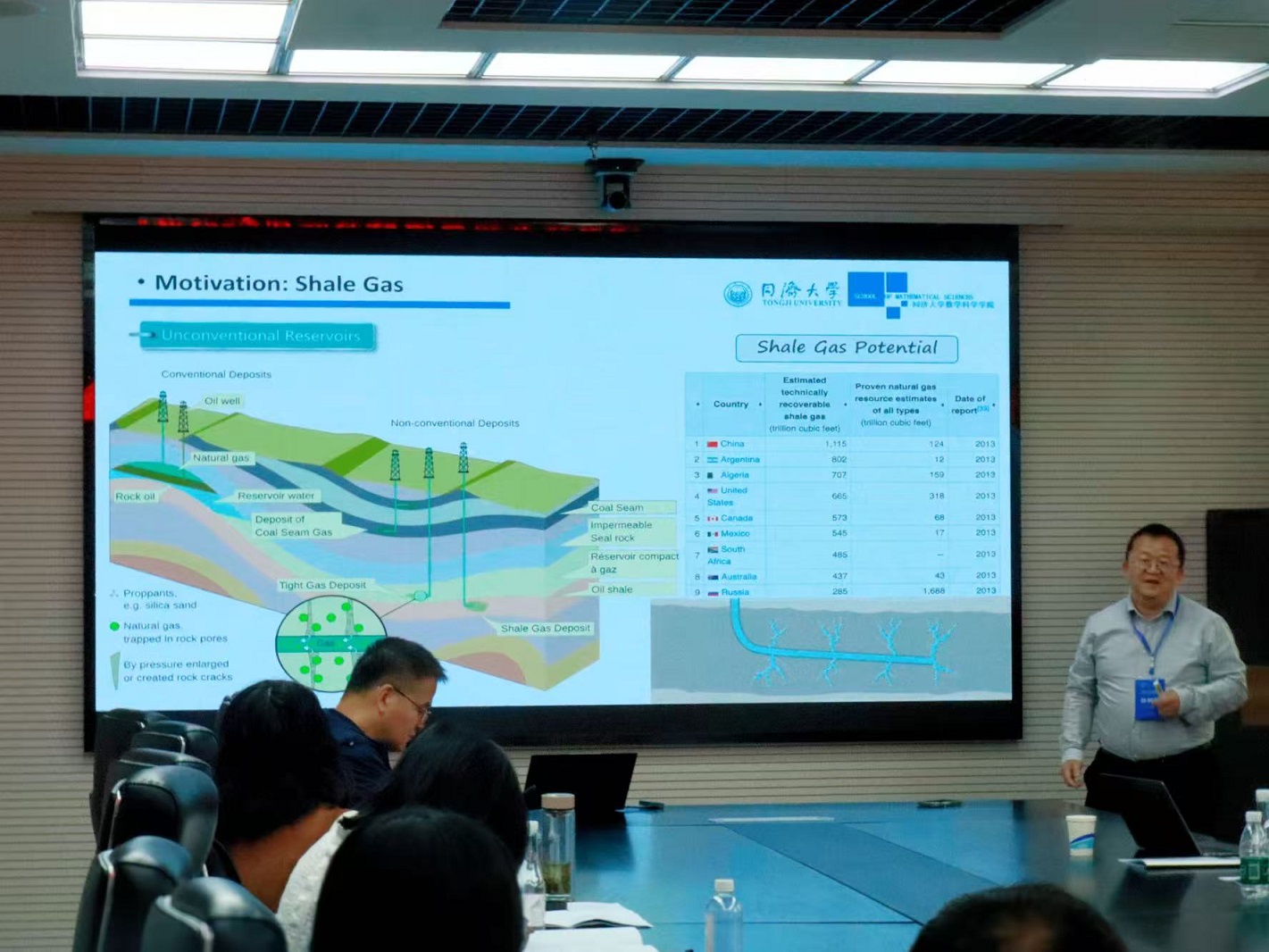 同济大学英国上市官网365经理孙树瑜教授作题为 “Robust Numerical Simulation Algorithms and Their Geo-Energy Applications” 的主题报告。孙教授阐释了鲁棒数值模拟算法在地质能源开发中的关键作用,讨论算法设计如何应对地下多孔介质非均质性、多相流耦合及岩体裂隙演化等复杂场景的数值不稳定性问题,通过两相流模型及Navier-Stokes-Cahn- Hilliard两个模型举例,揭示了高可靠性算法的工程价值,为能源勘探领域的计算工具升级提供理论支撑。