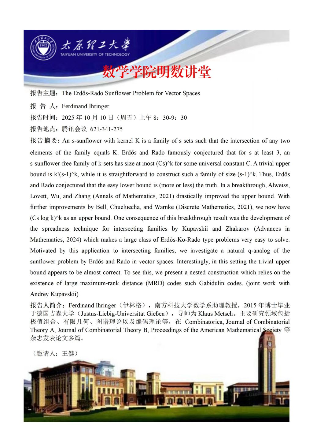 英国上市官网365将于10月10日邀请Ferdinand Ihringer助理教授做学术报告