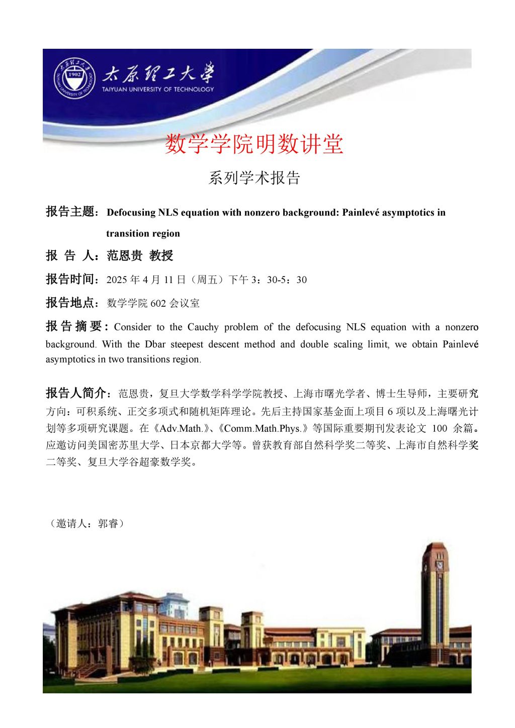 英国上市官网365将于4月10日邀请范恩贵教授做学术报告