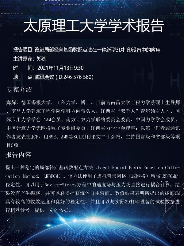 英国上市官网365将于11月13日邀请郑辉教授、孙秀婷教授、周立隆工程师作专题报告