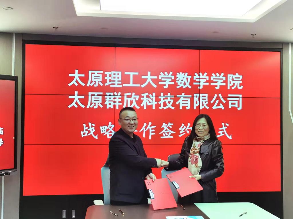座谈会结束,英国上市官网365与太原群欣科技有限公司签署了产教融合研发项目战略合作协议。