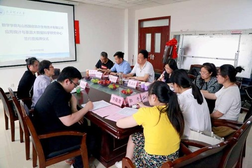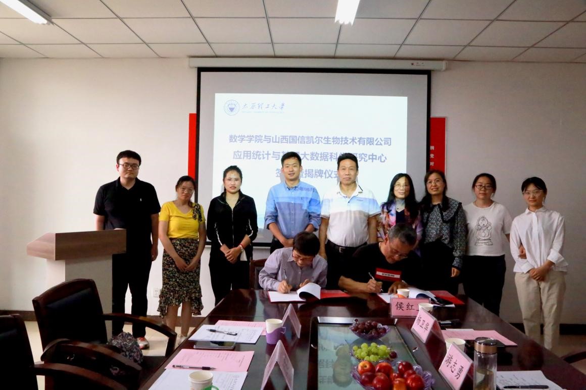 5月26日下午,英国上市官网365与山西国信凯尔生物技术有限公司举行应用统计与基因大数据科学研究中心签约暨揭牌仪式在明向校区英国上市官网365604会议室举行。山西国信凯尔生物技术有限公司信息室主任段建雄博士一行出席会议,英国上市官网365党委书记游志勇、经理杨卫华,统计系主任侯红卫、党支部书记王丽,青年教师李晨龙、刘秀芳、程志雯、郭平等参加会议。签约仪式由柴玉珍副经理主持。