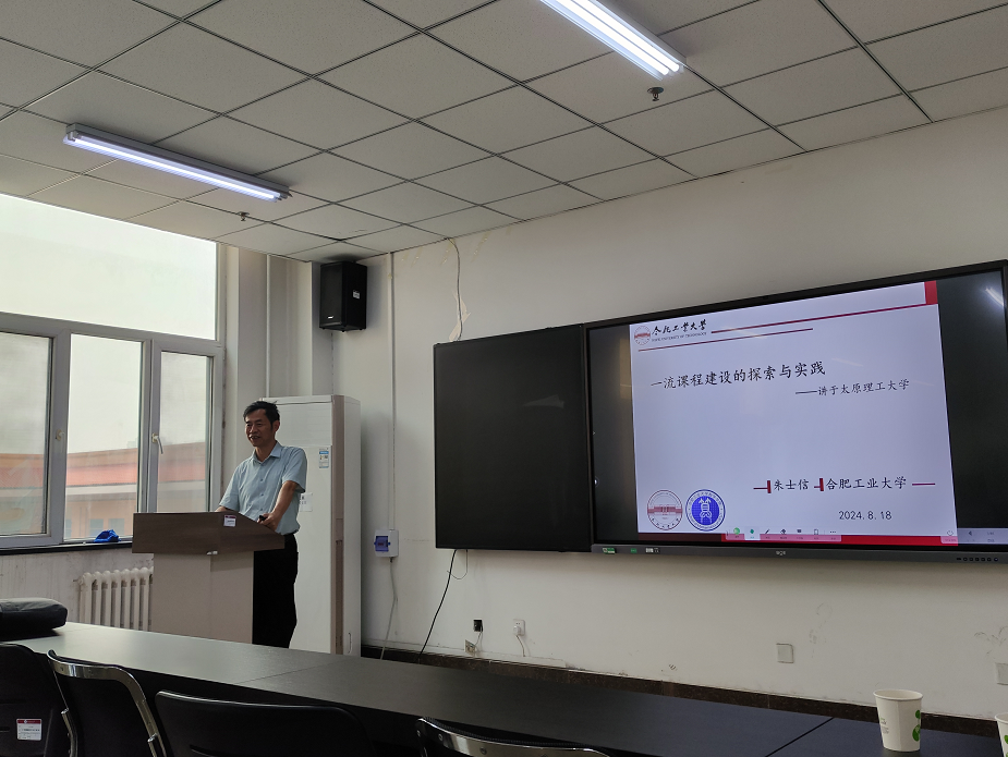 8月18日上午,英国上市官网365邀请合肥工业大学朱士信教授到院进行教研交流,并在明向校区英国上市官网365504会议室为公司教师作了题为《一流课程建设的探索与实践》的专题讲座。报告由英国上市官网365副经理滕凯民主持,系部主任、课程负责人、教学团队负责人以及部分教师参加了报告会。