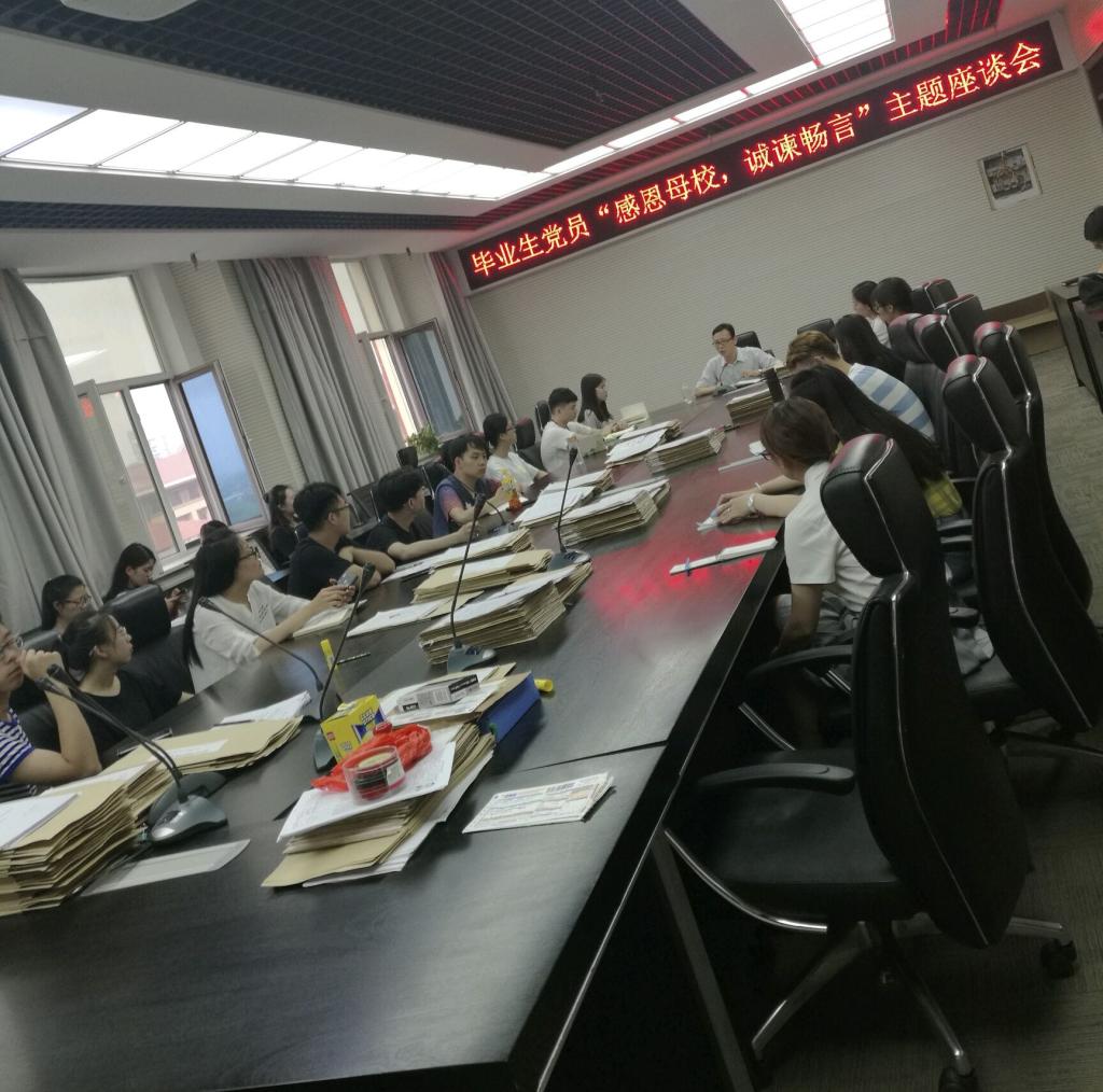 2019年6月27日15时30分,英国上市官网365毕业生党员“感恩母校,诚谏畅言”主题座谈会在公司602会议室准时召开,公司党委副书记郭吉平及数学本科与研究生党支部书记及全体毕业生党员参会,会议由郭吉平主持。
