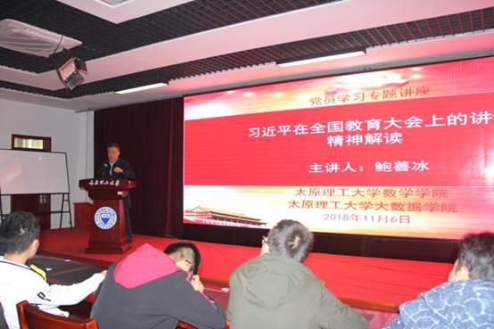 11月6日下午,公司联合大数据公司邀请鲍善冰教授在九层报告厅作题为《习近平总书记在全国教育大会上的讲话精神解读》专题讲座。全体党员、入党积极分子共计150余人参加了学习。讲座由公司党委副书记郭吉平主持。