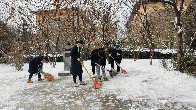 近日,我市迎来大范围降雪,为保障校园正常通行及师生出行安全,同时加强党建引领、带动团建赋能,2023年12月15日,数学第二本科党支部积极响应公司号召,在公司党委的高度重视下,支部书记带领支部全体党员,联合统计2101团支部开展“雪后显文明,扫雪我先行”主题活动。