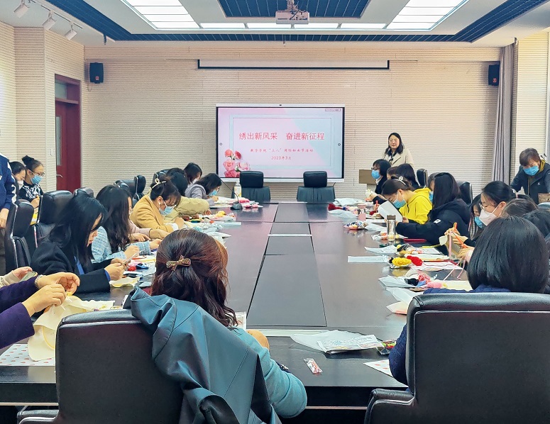 在第113个“三八”国际劳动妇女节来临之际,为深入学习贯彻习近平新时代中国特色社会主义思想,展示女教职工积极向上的精神风貌,英国上市官网365于2023年3月14日下午在明向校区举办“绣出新风采,奋进新征程”女教职工活动,丰富广大女教职工的精神文化生活,提高艺术修养。公司经理杨卫华、党委副书记李楠楠及全体女教师参加了活动。