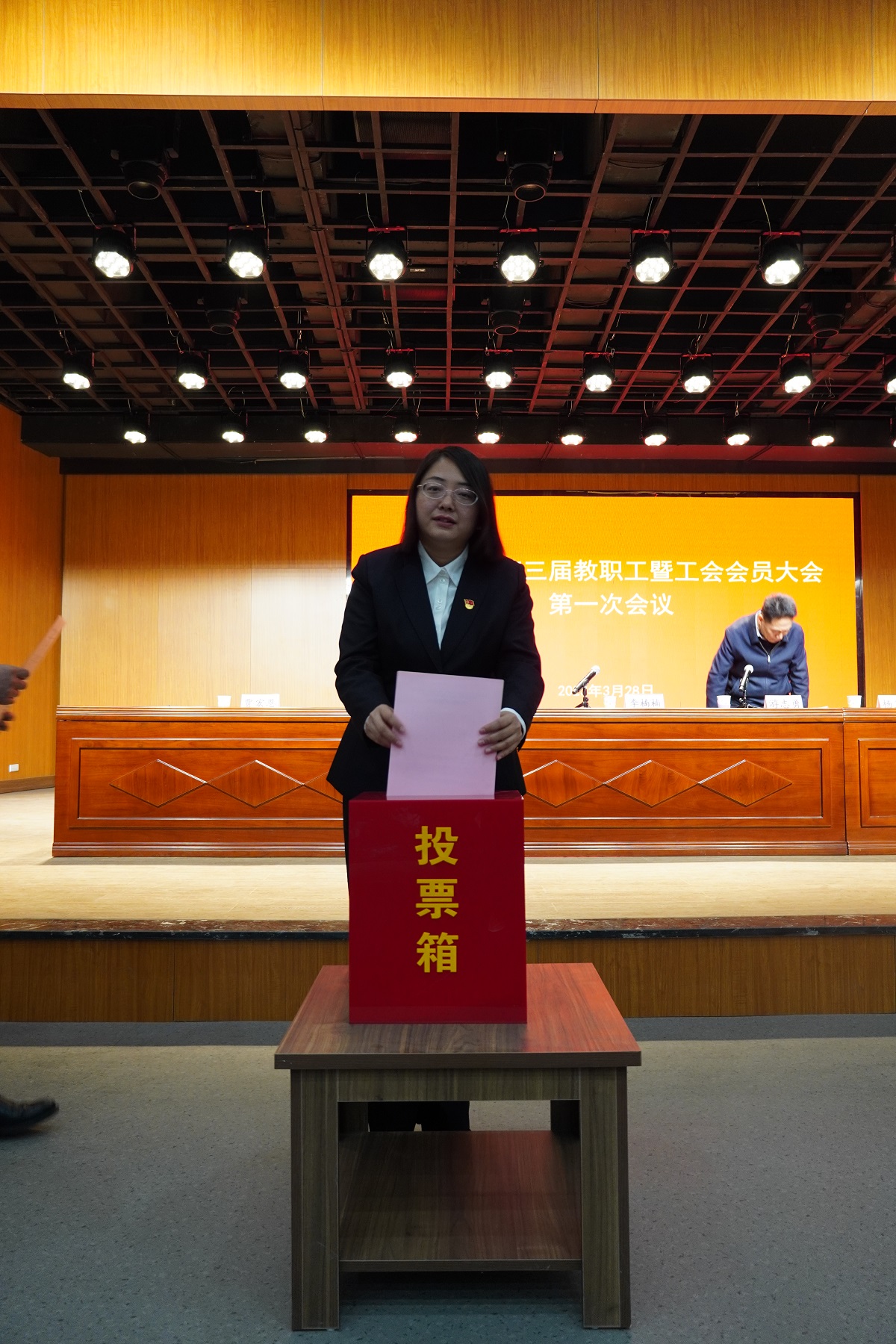 3月28日下午,英国上市官网365第三届教职工暨工会会员大会第一次会议在明向校区艺术公司“艺术之光”报告厅隆重召开。全院教职工参加会议,校工会副主席黄沛舜应邀出席大会,开幕式由公司党委副书记李楠楠主持。