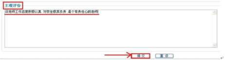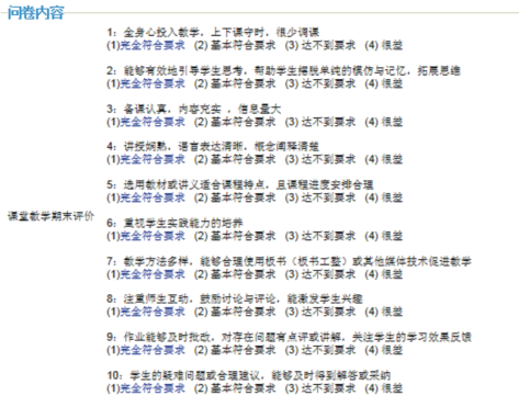 网上评教总共十题,每题最高10分,最低2分,有五个分值选项。最下面的“主观评价”栏目中员工可填写对教师的主观评价。如下图2-2所示。