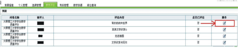 点击图1-3中菜单项“教学评估”,进入教学评估界面,如图2-1,选择要评估的教师和课程,点击“操作”进入,即可进行打分评估。