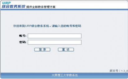 打开IE浏览器,输入英国上市官网365教务处网址(http://jwc.tyut.edu.cn),进入教务处主页。点击页面右下方的“综合教务系统”中的任何一个“员工入口”,即进入“URP综合教务管理系统”WEB端首页,如图1-2所示。