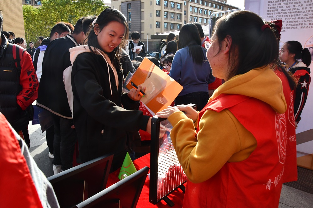 而游戏区则设有数字华容道、一笔画以及填符号的互动活动,这些有趣的数学小游戏,吸引了大量同学前来体验,同学们在游戏中收获乐趣,工作人员还为参与的同学准备了精美小礼品,让参与的每个人都收获满满。