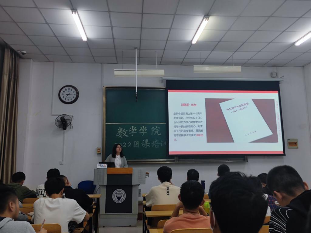 团课第四讲,院团委书记冯妍以新时代对新青年的要求为切入点,将青年与共青团知识相结合,刻画了青年与团之间不可分割的联系,向学员们讲解了团的基本知识,并结合时事,从疫情到支教,讲述了一些优秀共青团员的事迹。通过本次团课,学员们了解到了党与团与青年的密切联系,明白要严格要求自我、努力学习,以实现中华民族的伟大复兴为己任。
