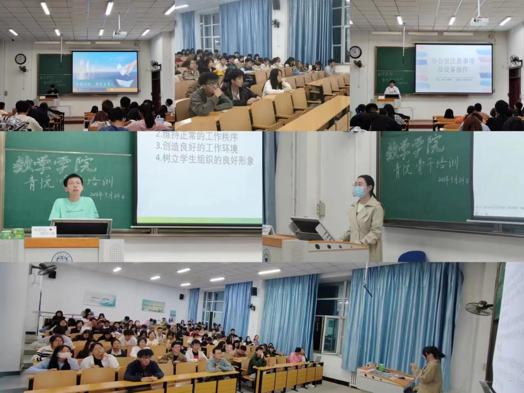 为动员引领青悦骨干认真学习领会习近平新时代中国特色社会主义思想,有力有序推进团员和青年主题教育,充分激发新时代青年的青春激情,党委副书记李楠楠为同学们带来了一场主题为“树理想、强本领、勇担当,争做新时代优秀青悦骨干”的讲座。她通过中国共产党百年历史的四个时期对青年的要求分别做了说明,告诉同学们如何做好一名新时代合格的青悦骨干。团委书记冯妍为同学们做了一讲题为“看非凡十年,悟使命担当”的专题讲座。她通过回顾祖国十年来的伟大变革,鼓励青悦骨干要紧跟时代要求,明确自己的使命和担当。同时勉励青悦骨干要充分发挥桥梁纽带作用、正面引导作用和核心骨干作用,组织开展形式多样的主题学习活动,营造积极向上的学习氛围。