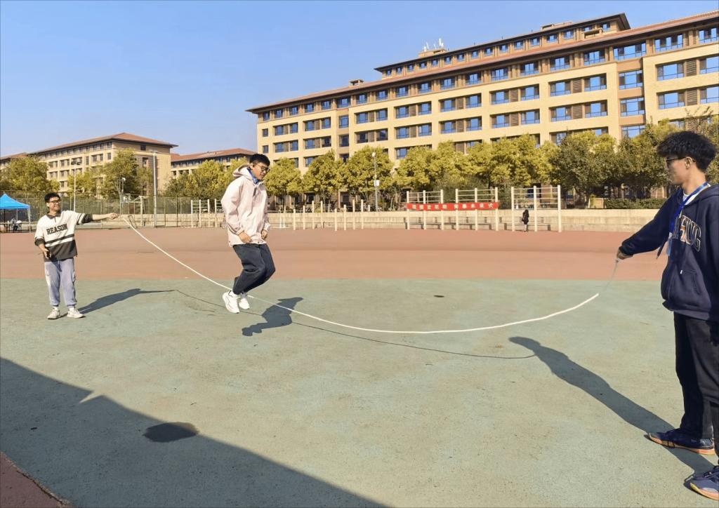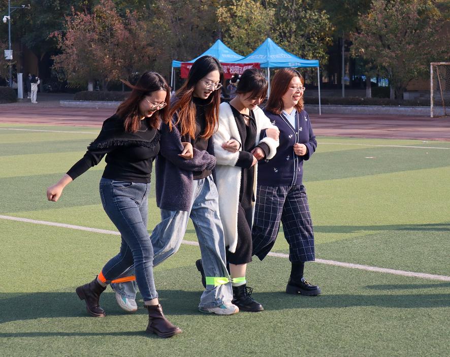 此次运动会共设十种项目,趣味性十足,涵盖了“地动山摇”、“健身达人”、“同心协力”等多种类型。赛场上,每个项目都精彩纷呈。团队赛中,队员们配合默契,带着信任与信心,出色地通过了速度与毅力的考验,发扬团结协作的精神风貌,加油声,喝彩声,欢笑声此起彼伏;个人赛中,不仅有体力的较量,更有对脑力的考验,“奔跑中的定积分”通过求解积分数学题来进行比拼,利用体育与数学的结合,赛出自己的青春风采。