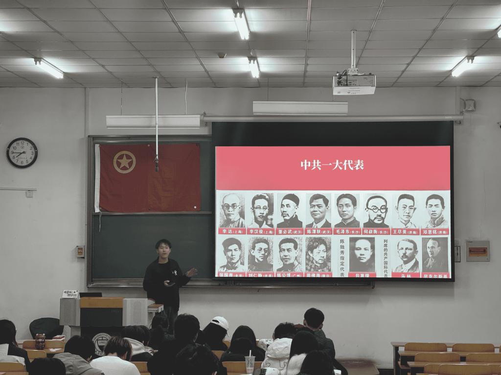宣讲团成员薛毅豪围绕“红色记忆”展开宣讲,带领在场同学一起深入了解中共一大背后惊心动魄的故事,重新感悟了红船精神的历史意义。两位学员勉励大家踔厉奋发,勇毅前行,在全面建设社会主义现代化国家新征程上展现团员与青年的时代担当与奋进风采。