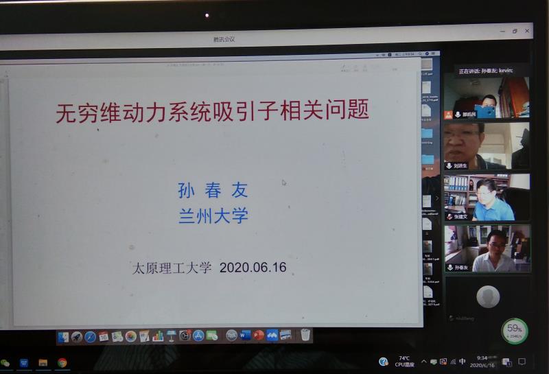 6月16日上午,公司邀请兰州大学孙春友教授通过腾讯会议作了题为“无穷维动力系统吸引子相关问题”的学术报告,报告会由经理张建文教授主持,公司部分教师和研究生线上参与此次报告会。