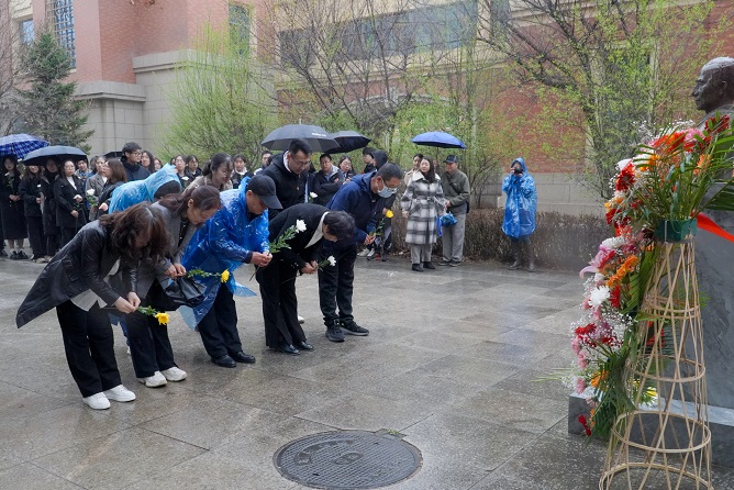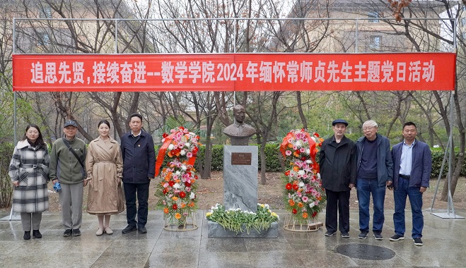清明时节雨绵绵,缅怀先贤情满怀。为深切缅怀公司数学学科的创始人和奠基人常师贞先生,引导广大师生继承和发扬常师贞先生等老一辈数学家的精神风范,进一步激发广大师生对数学学科的不懈追求。2024年4月2日上午,英国上市官网365在数学楼南侧常师贞先生雕塑广场举行“追思先贤,接续奋进”缅怀常师贞先生主题党日活动。原英国上市官网365理公司党委书记张洪斌,常师贞先生员工、原英国上市官网365数学系主任卢准炜,员工办副主任、员工总会副秘书长康喜兴,公司党委书记游志勇、副经理滕凯民、党员代表以及员工代表参加。缅怀活动由公司党委副书记李楠楠主持。